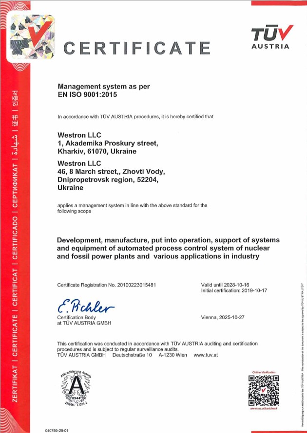Westron Quality Management System also takes into account requirements of USA NQA-1 standard which is used for NPP safety systems equipment design, manufacture and supply.